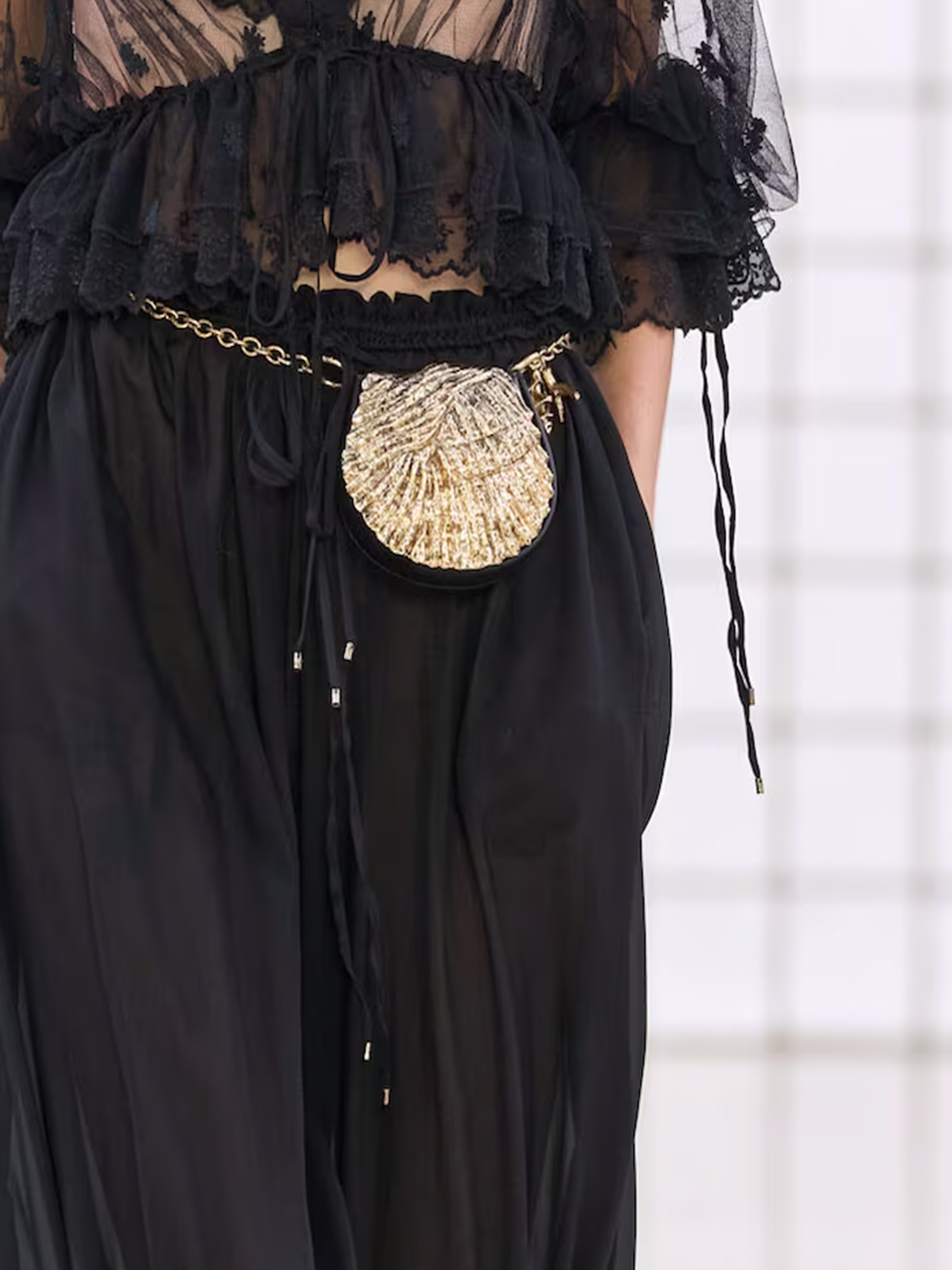 조개 모양의 미니 벨트 백. 그리고 깨진 조개껍데기, 돌 등을 형상한 액세서리로 여름의 디테일을 더했어요. (이미지=끌로에)